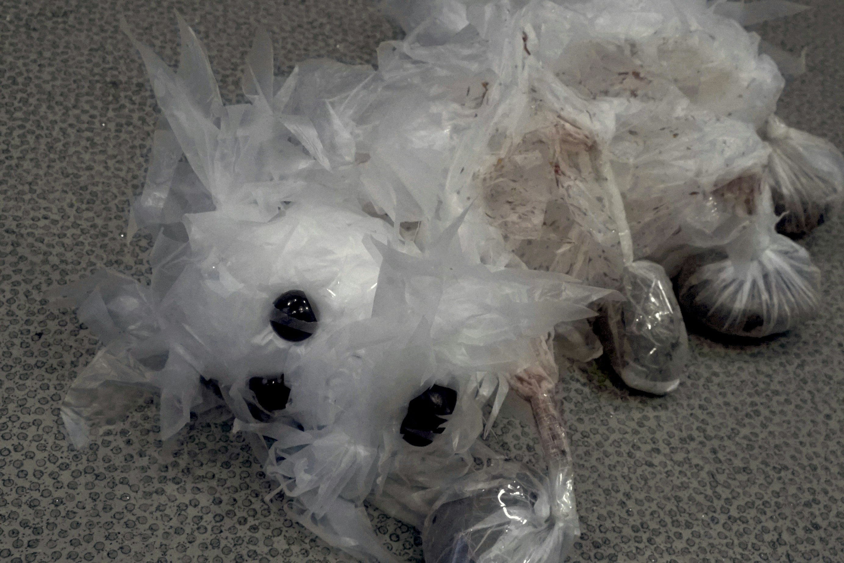 The concept of killing this puppet on stage was to represent the many heath problems associated with Pedigree dogs. Poopa Poodle overheats and has a fit linking to pug breads which can easily overheat in the show ring and struggle to breath. There are also health problems associated with the Terrier including White dog shaker syndrome can lead to tremors and ataxia in the dog.