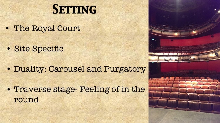 The setting of our project was of key importance. The Royal Court theatre was chosen for its flexibility, shape and industrial finish. We were inspired by the site-specific opportunities to use the auditorium as well as the stage.